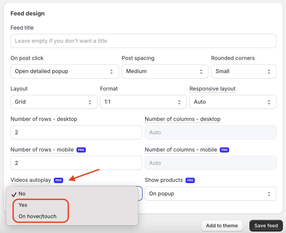 The option to play Instafeed videos automatically is available on our Pro and Plus plans.